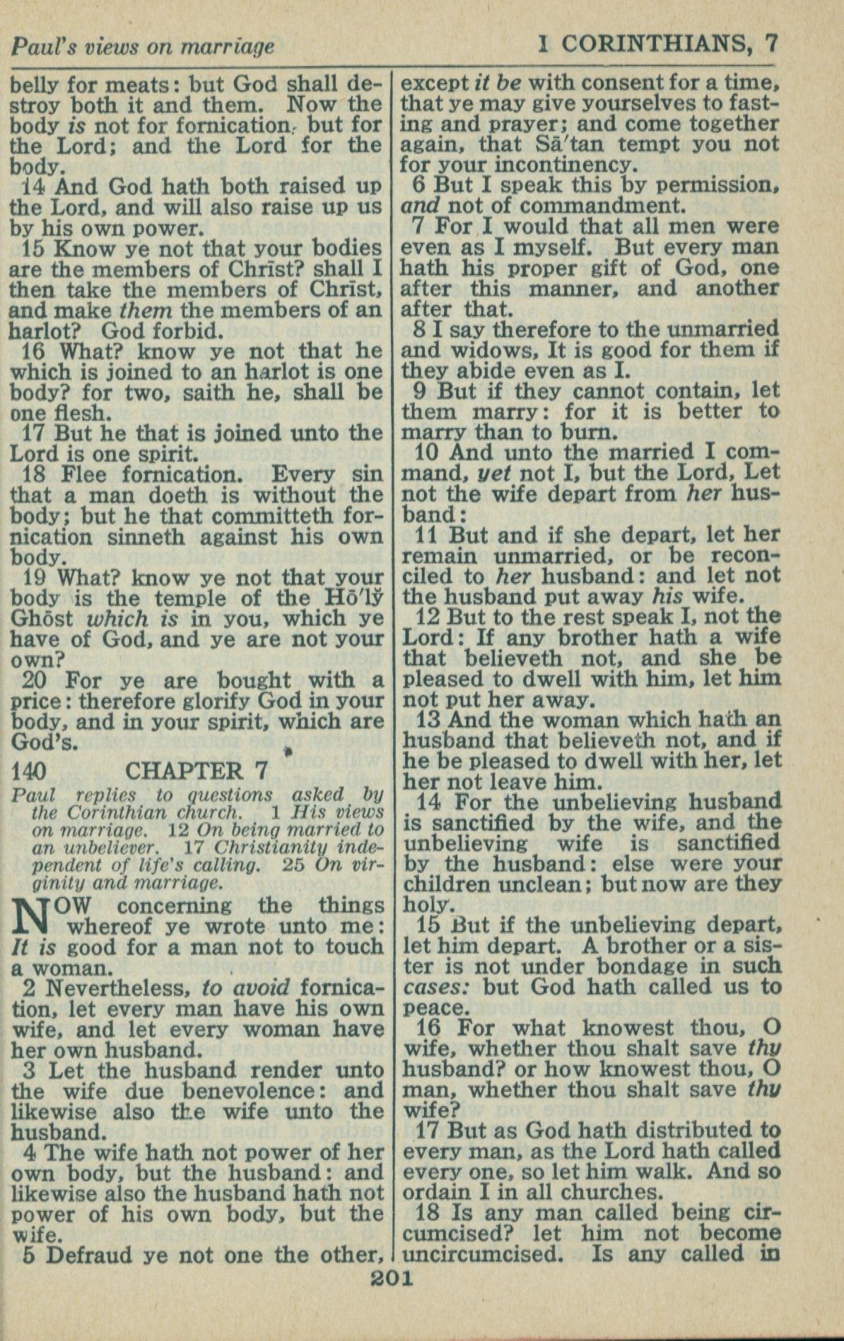 1946年King James Version 哥林多前书 6 章 14 节到 7 章 18 节