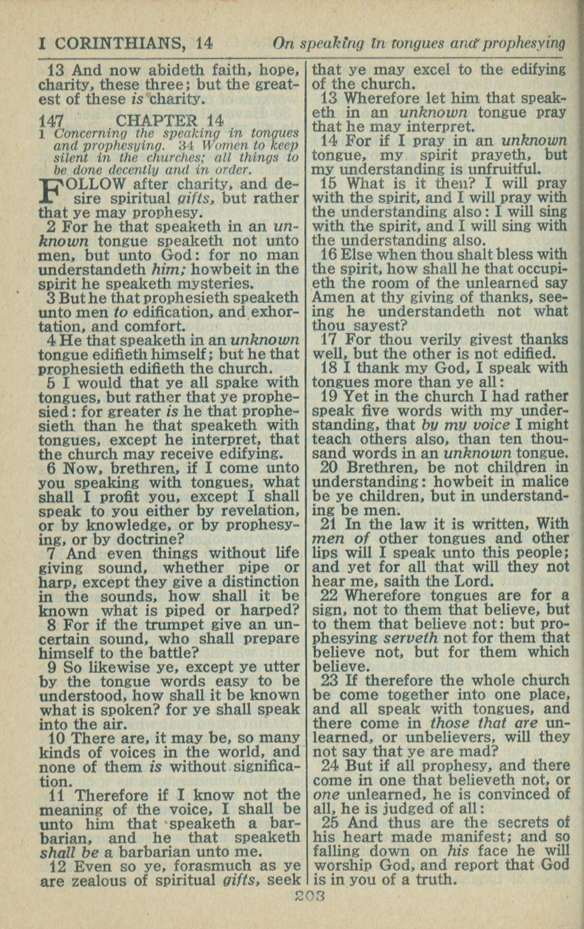 1946年King James Version 哥林多前书 13 章 13 节到 14 章 25 节