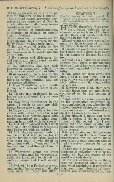 1946年King James Version 哥林多后书 6 章 3 节到 7 章 11 节