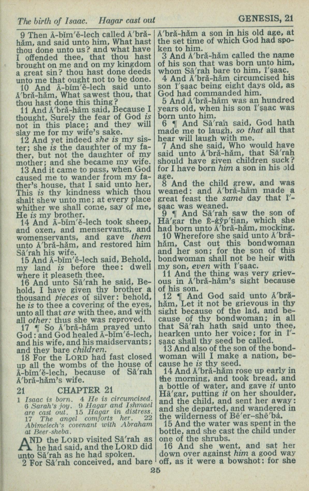 1946年King James Version 创世记 20 章 9 节到 21 章 16 节