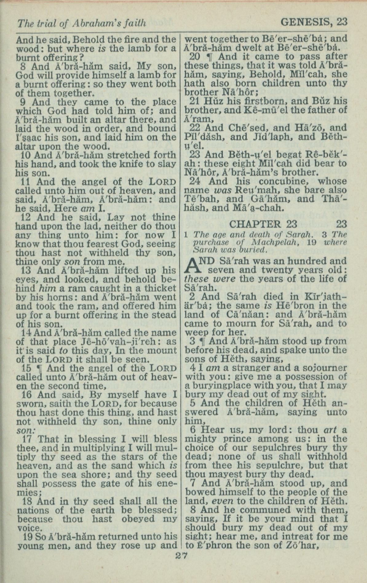1946年King James Version 创世记 22 章 8 节到 23 章 8 节