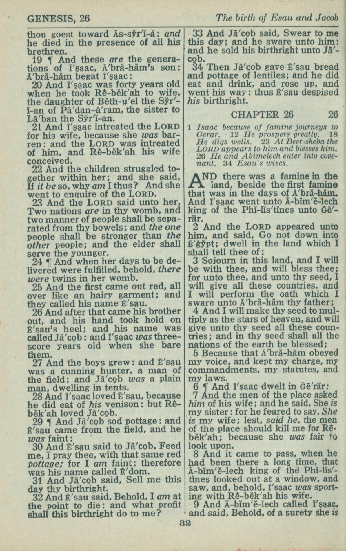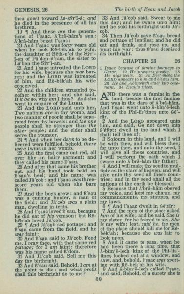 1946年King James Version 创世记 25 章 19 节到 26 章 9 节