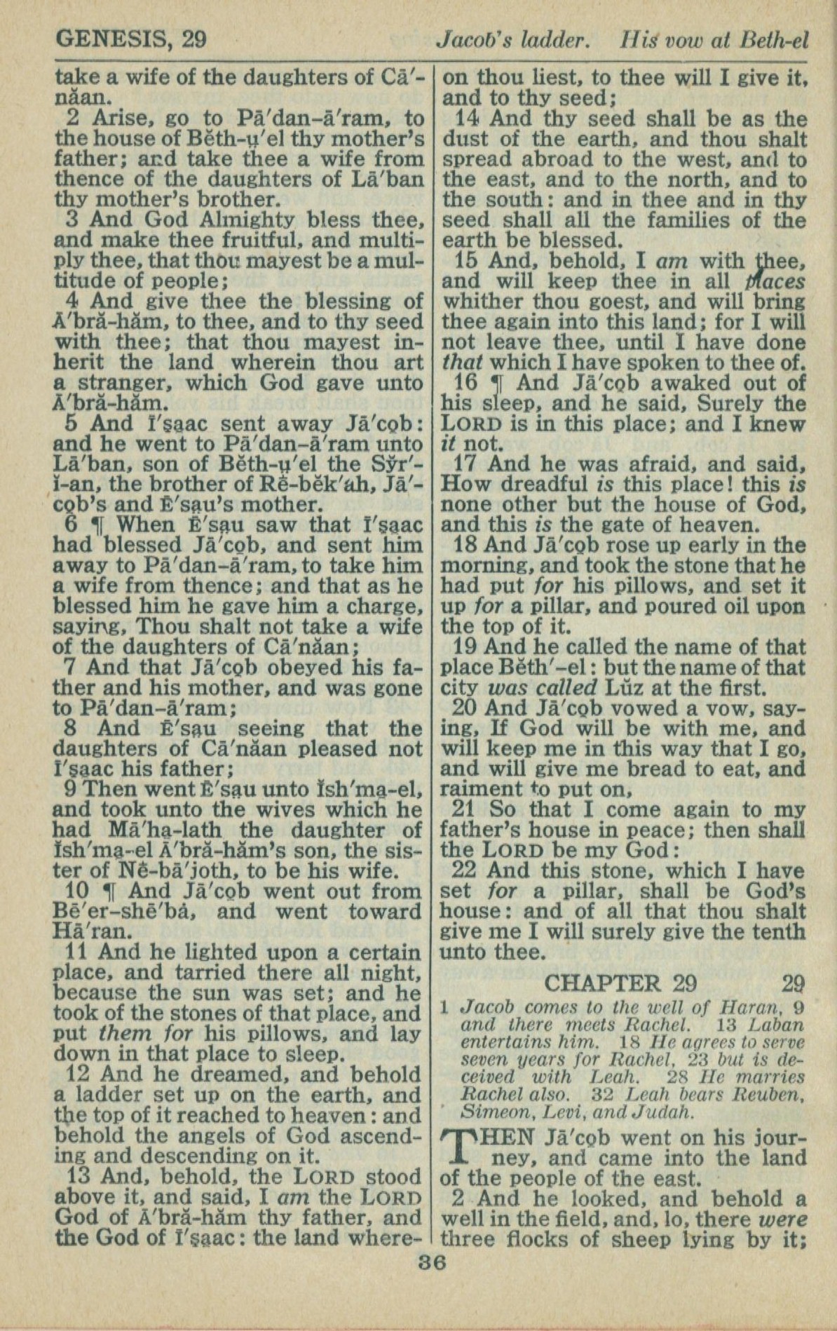 1946年King James Version 创世记 28 章 2 节到 29 章 2 节