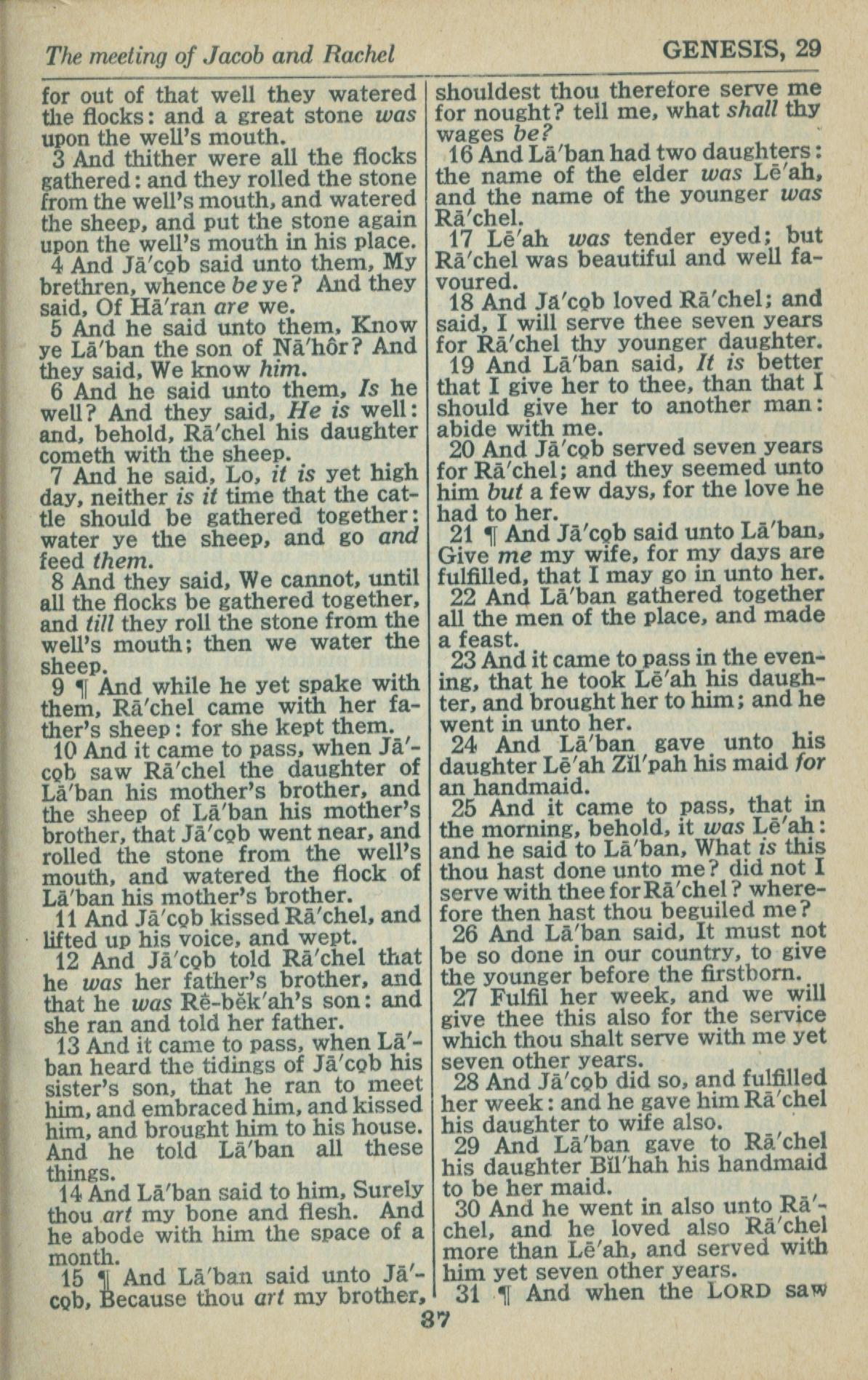 1946年King James Version 创世记 29 章 3 节到 29 章 31 节