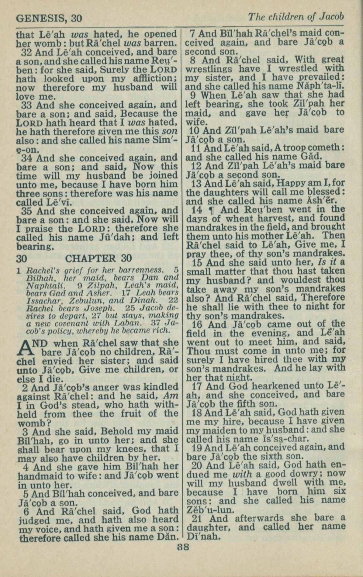 1946年King James Version 创世记 29 章 32 节到 30 章 21 节