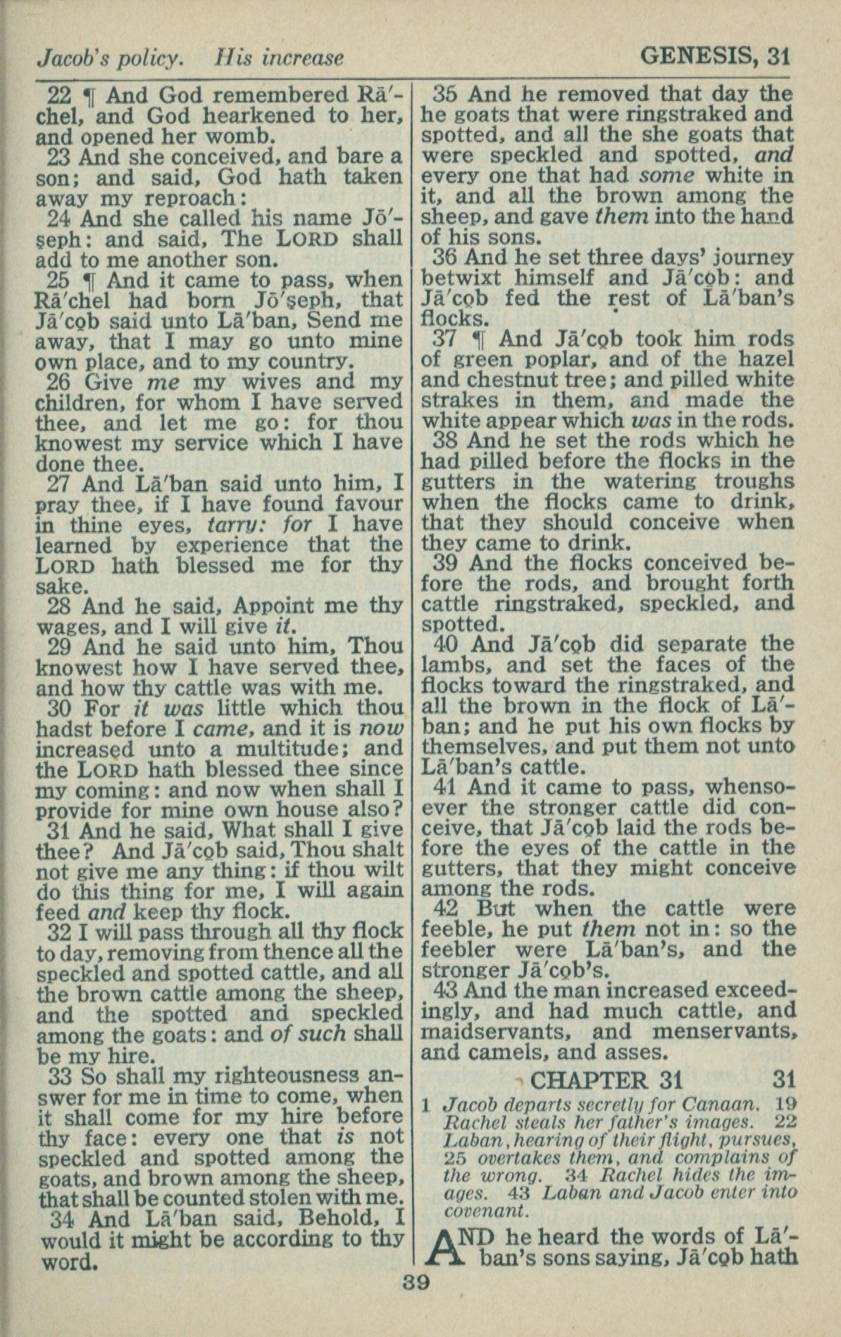 1946年King James Version 创世记 30 章 22 节到 31 章 1 节