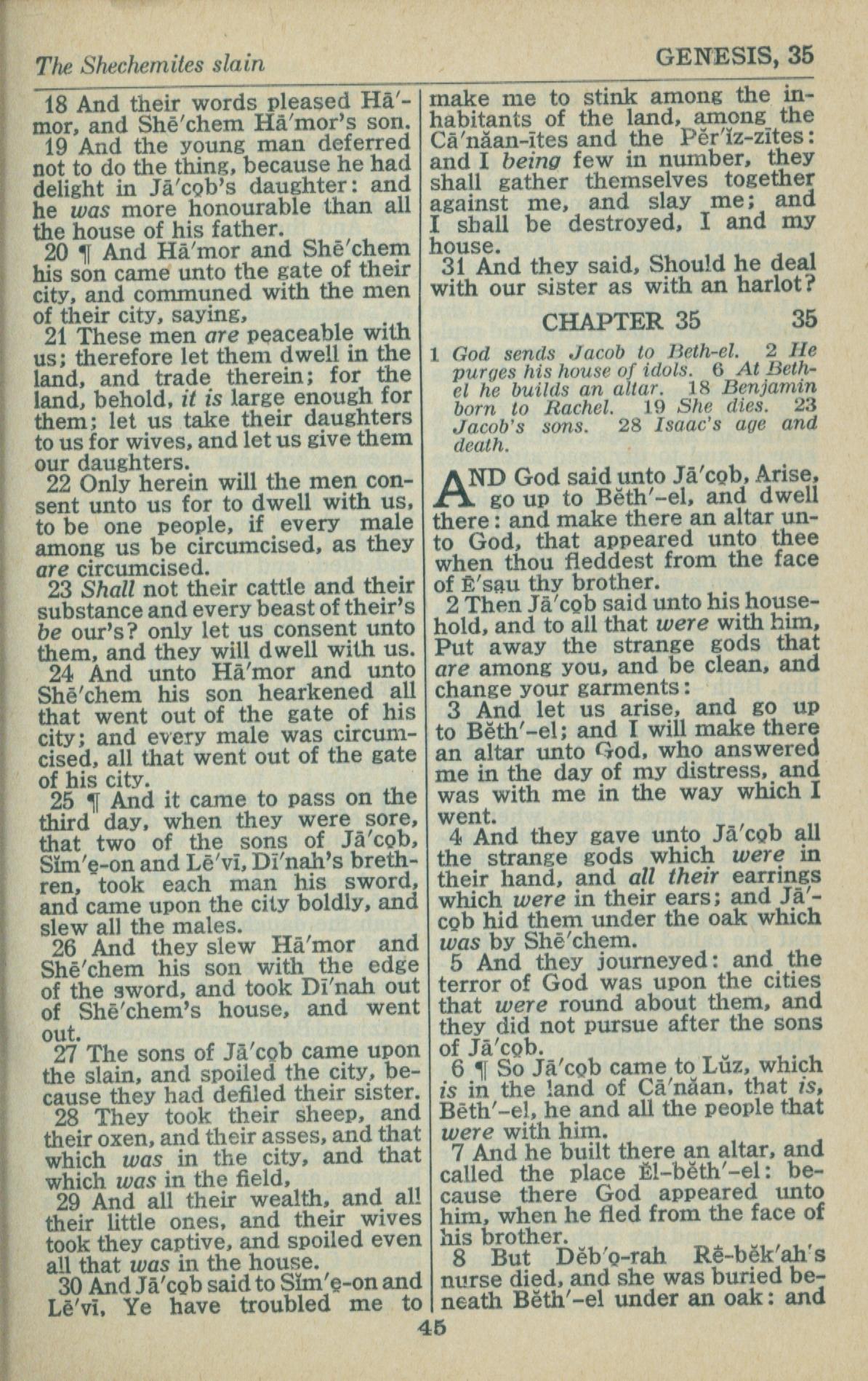 1946年King James Version 创世记 34 章 18 节到 35 章 8 节
