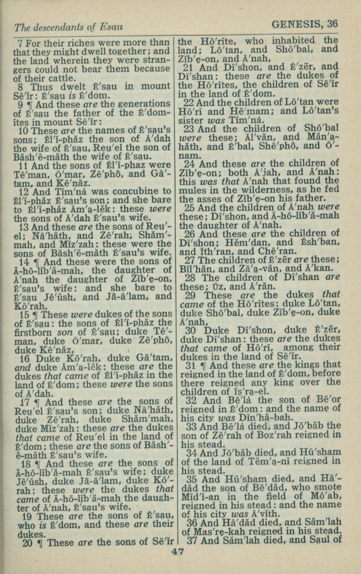 1946年King James Version 创世记 36 章 7 节到 36 章 37 节