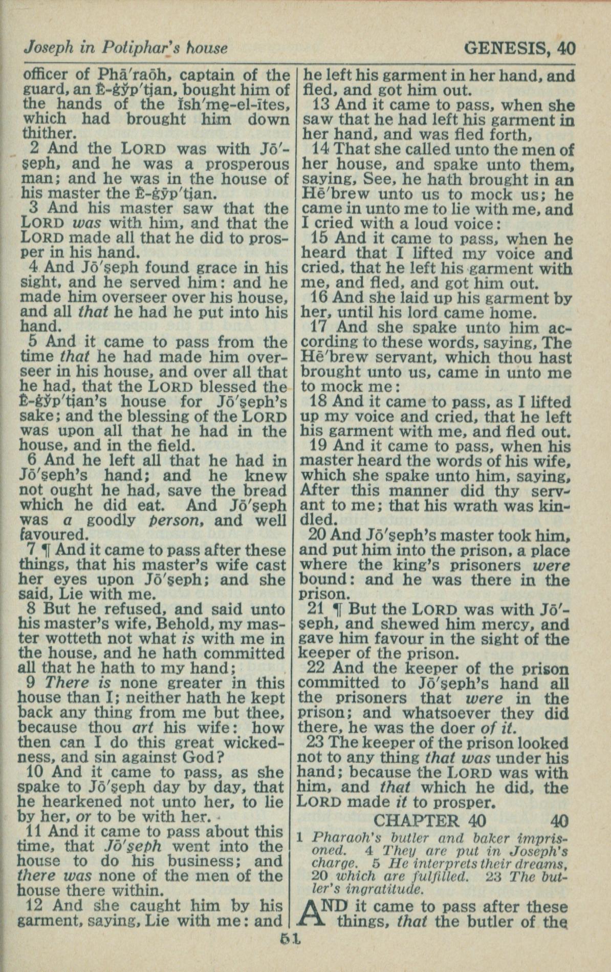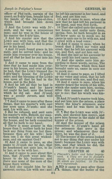1946年King James Version 创世记 39 章 2 节到 40 章 1 节