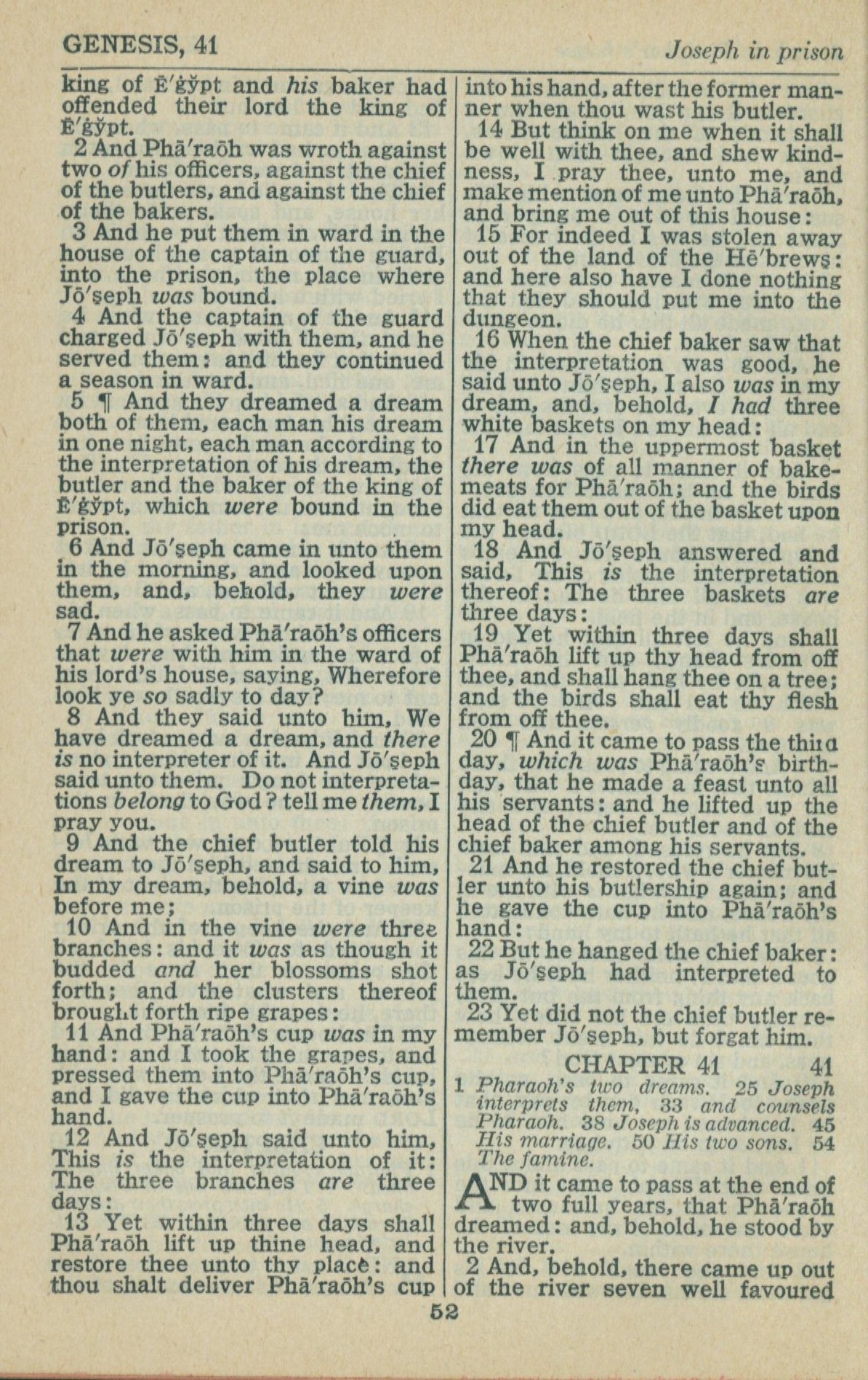 1946年King James Version 创世记 40 章 2 节到 41 章 2 节