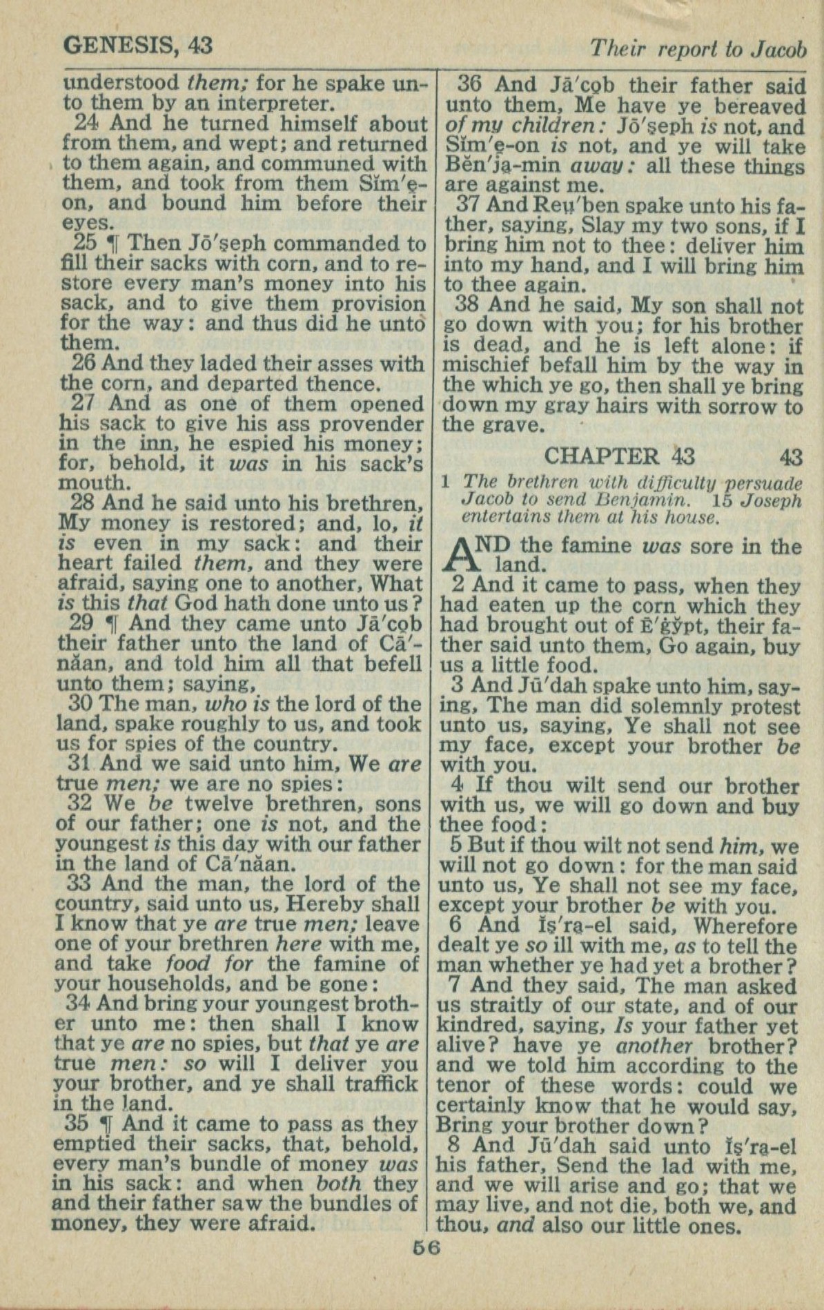 1946年King James Version 创世记 42 章 24 节到 43 章 8 节