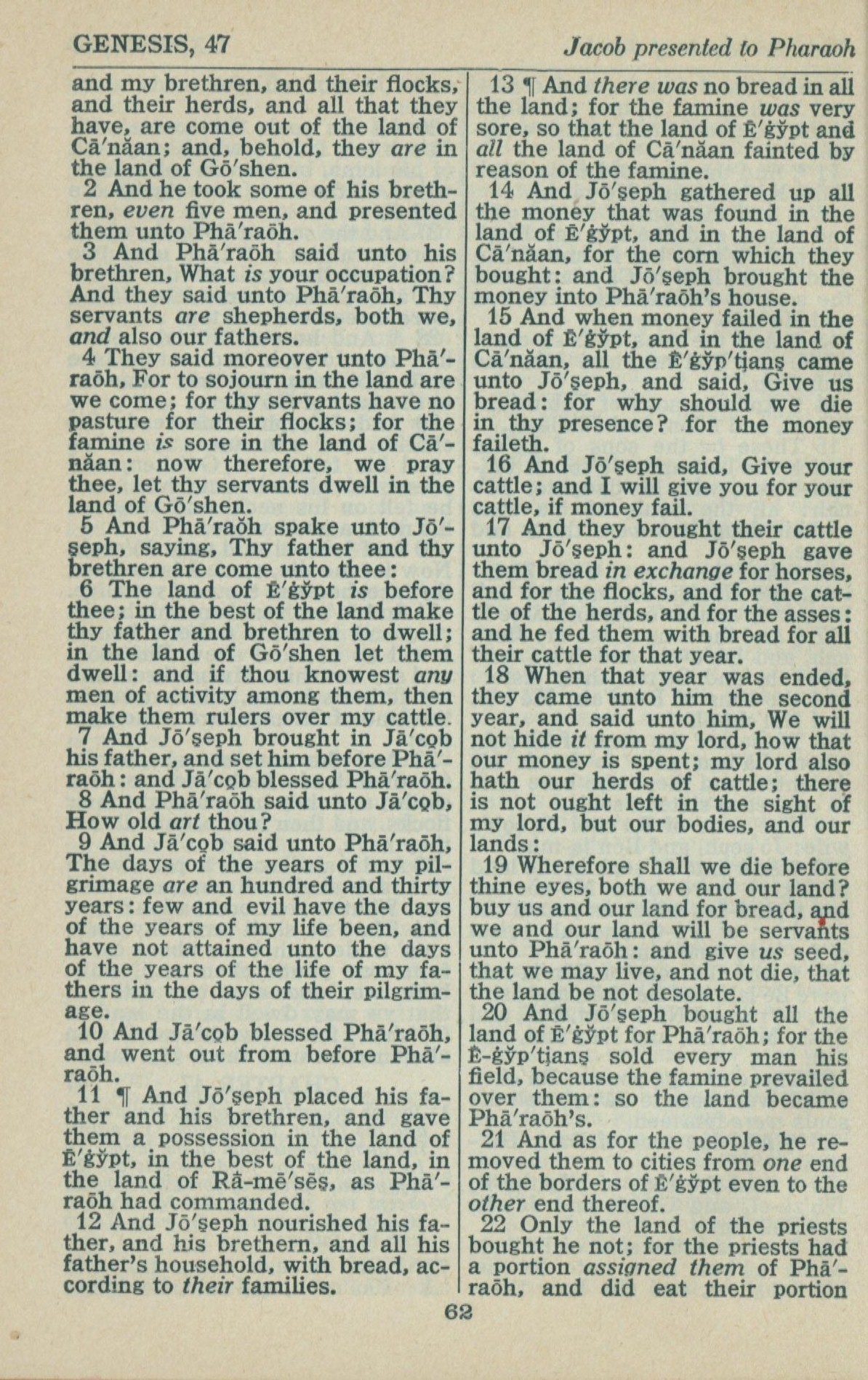 1946年King James Version 创世记 47 章 2 节到 47 章 22 节