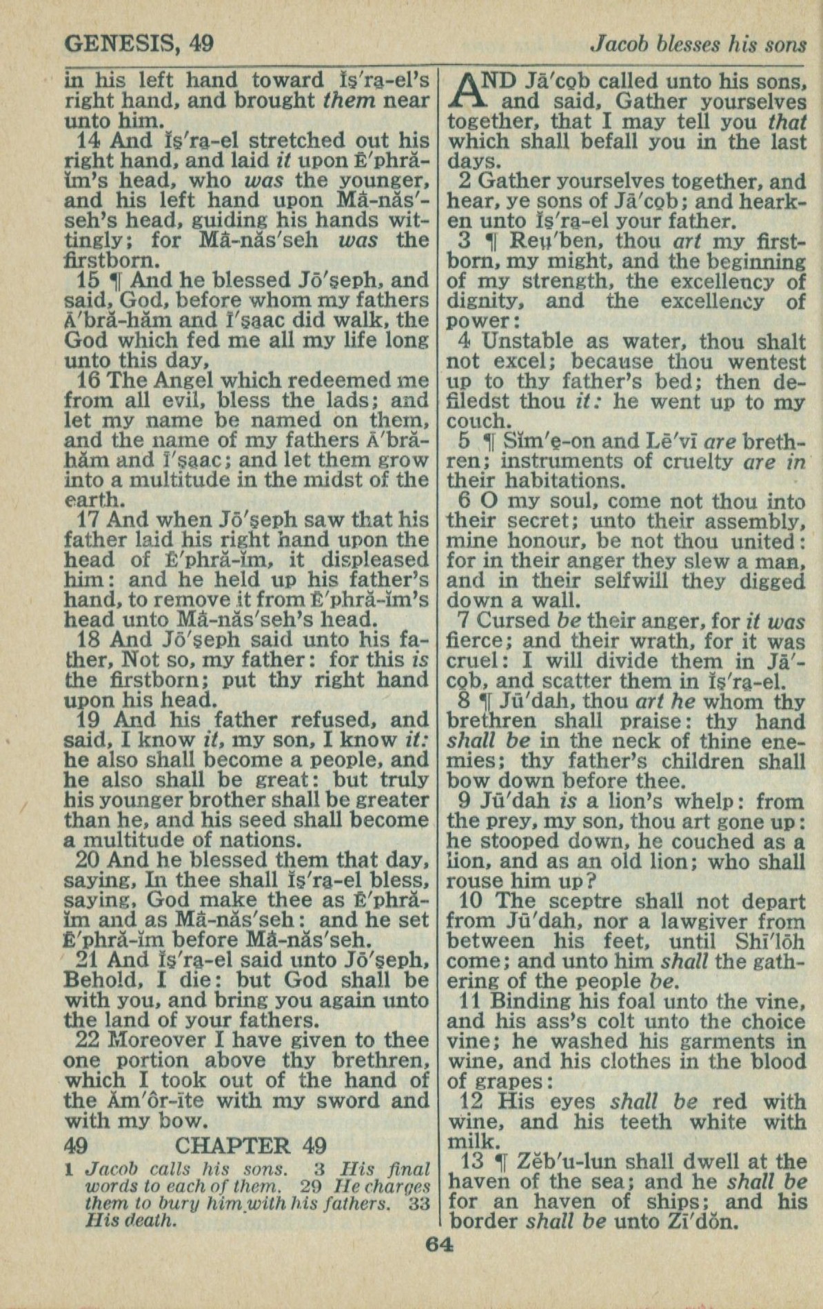 1946年King James Version 创世记 48 章 14 节到 49 章 13 节