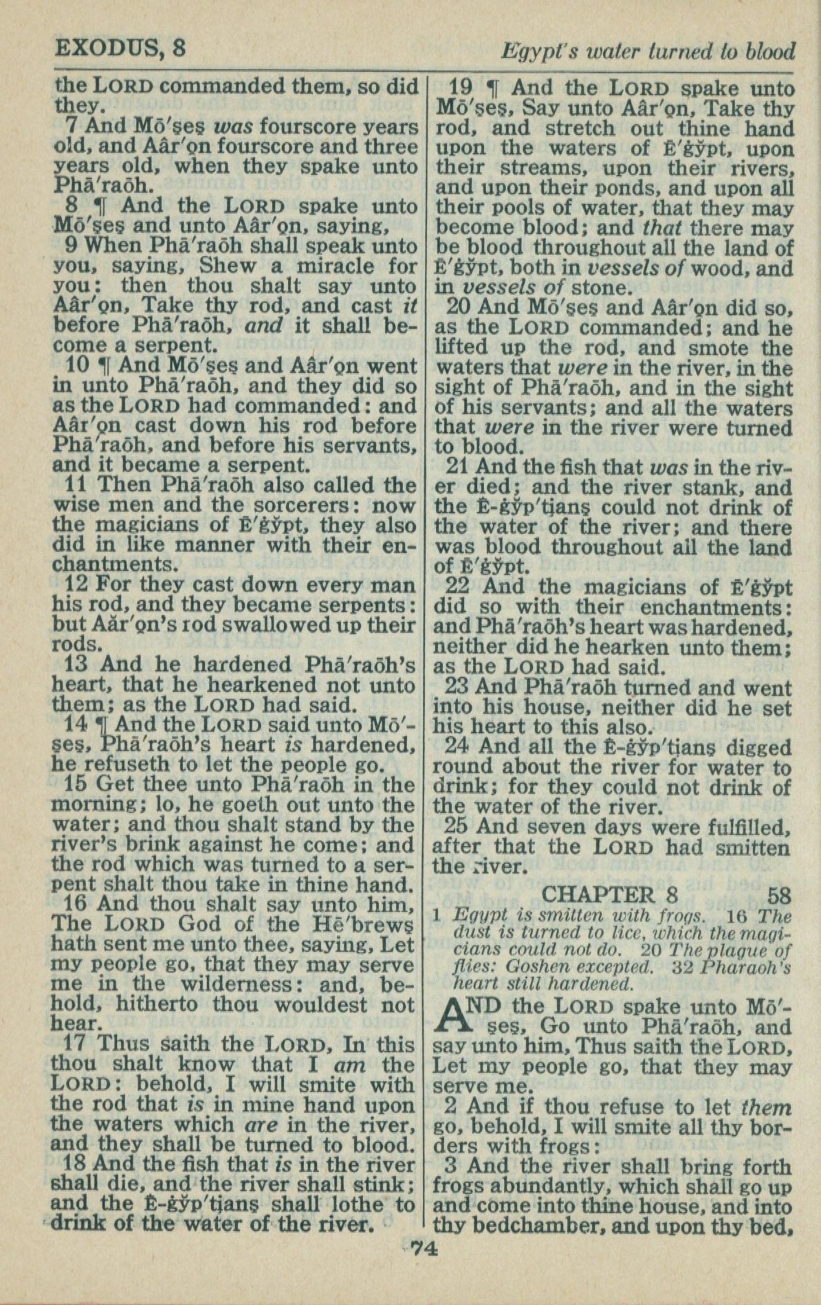 1946年King James Version 出埃及记 7 章 7 节到 8 章 3 节