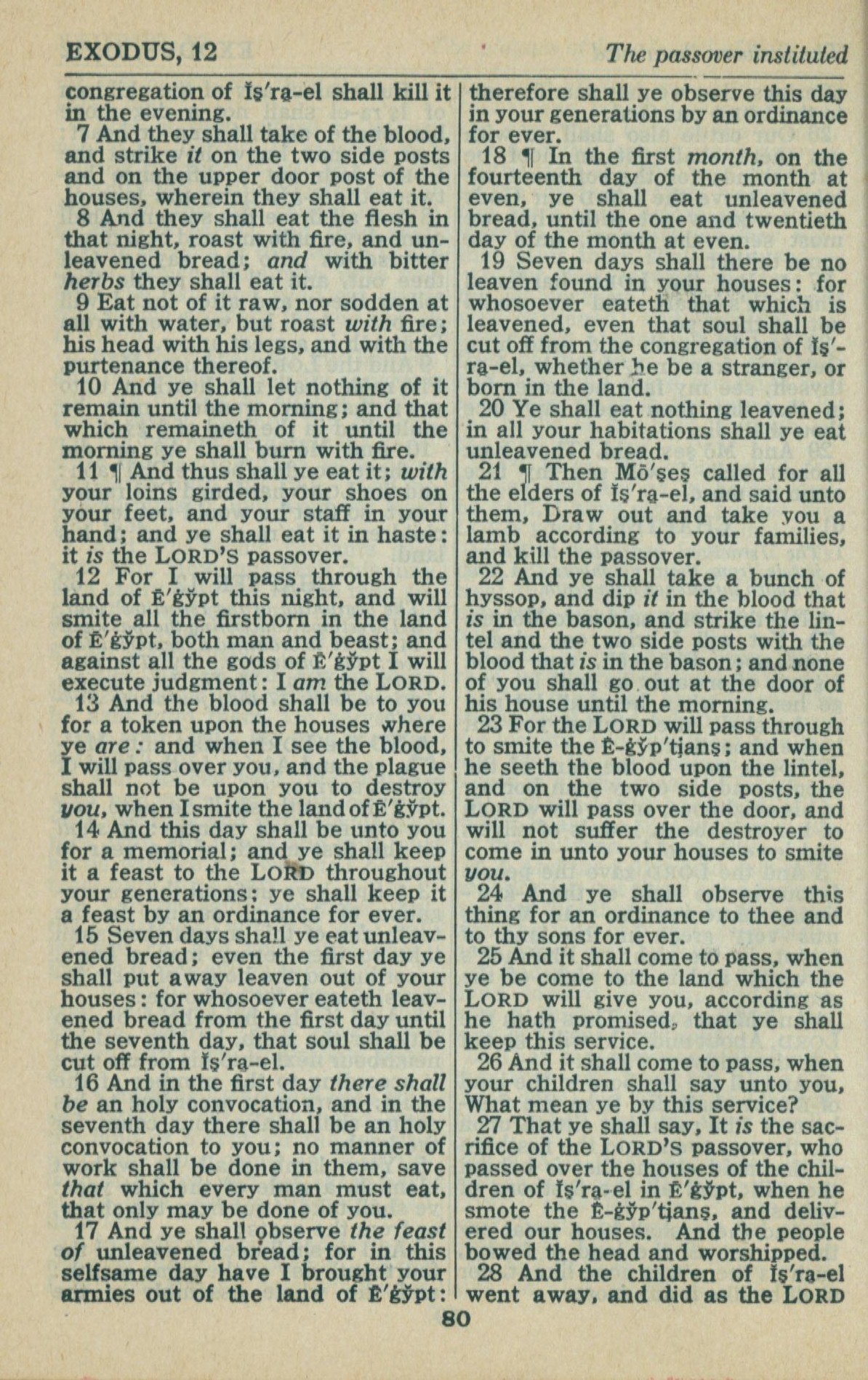 1946年King James Version 出埃及记 12 章 7 节到 12 章 28 节
