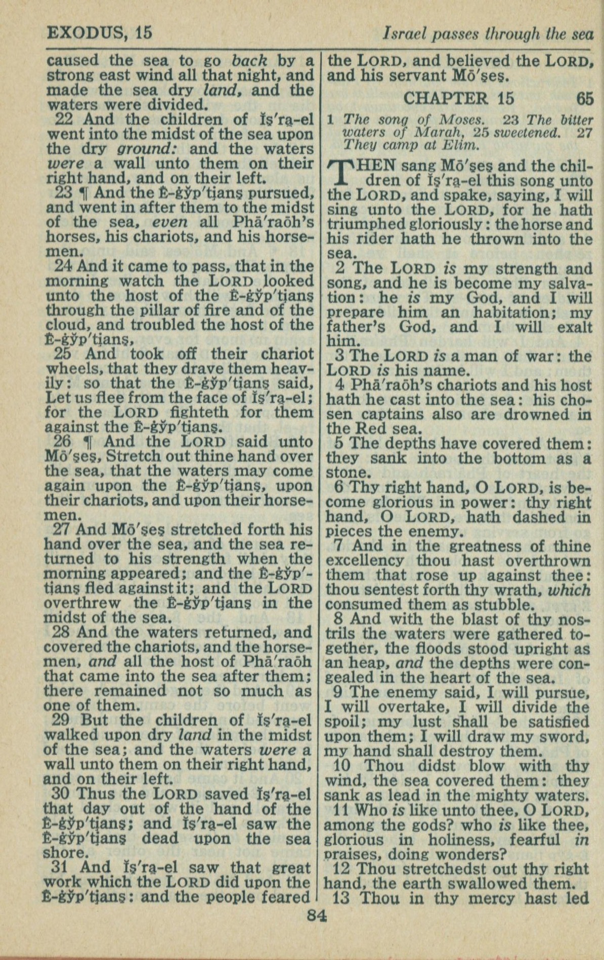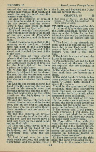 1946年King James Version 出埃及记 14 章 22 节到 15 章 13 节