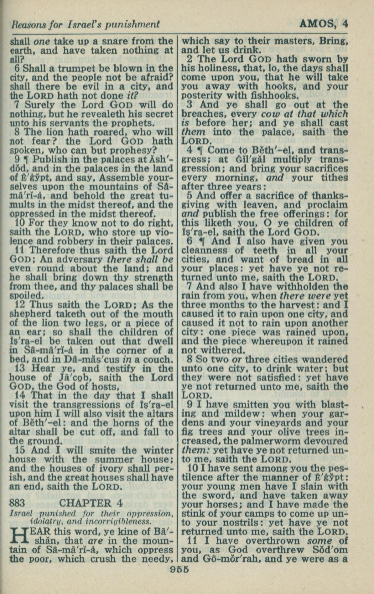 1946年King James Version 阿摩司书 3 章 6 节到 4 章 11 节